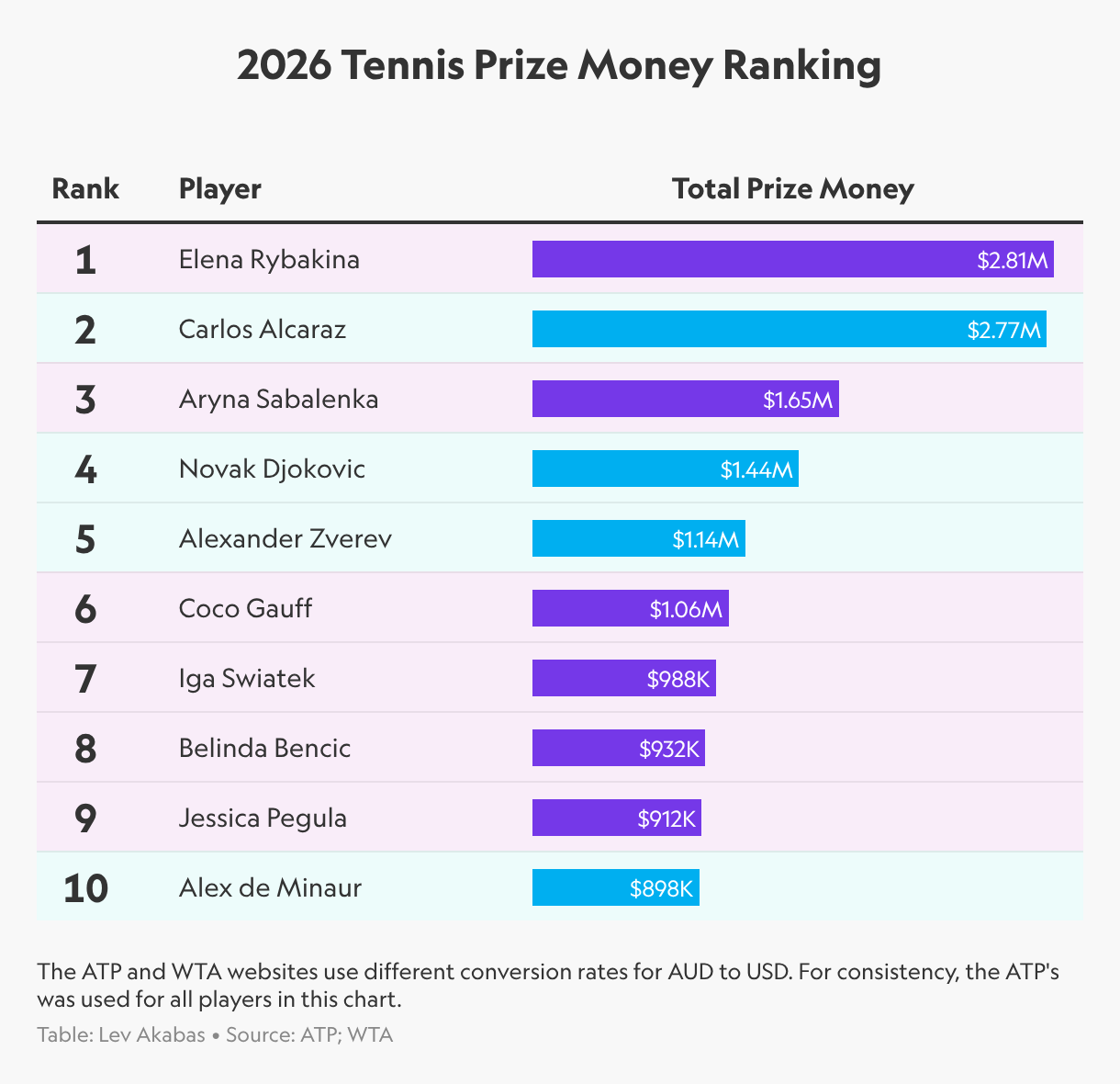 Read more: Tennis Prize Money Tracker: Which Player Has Earned the Most in 2026?